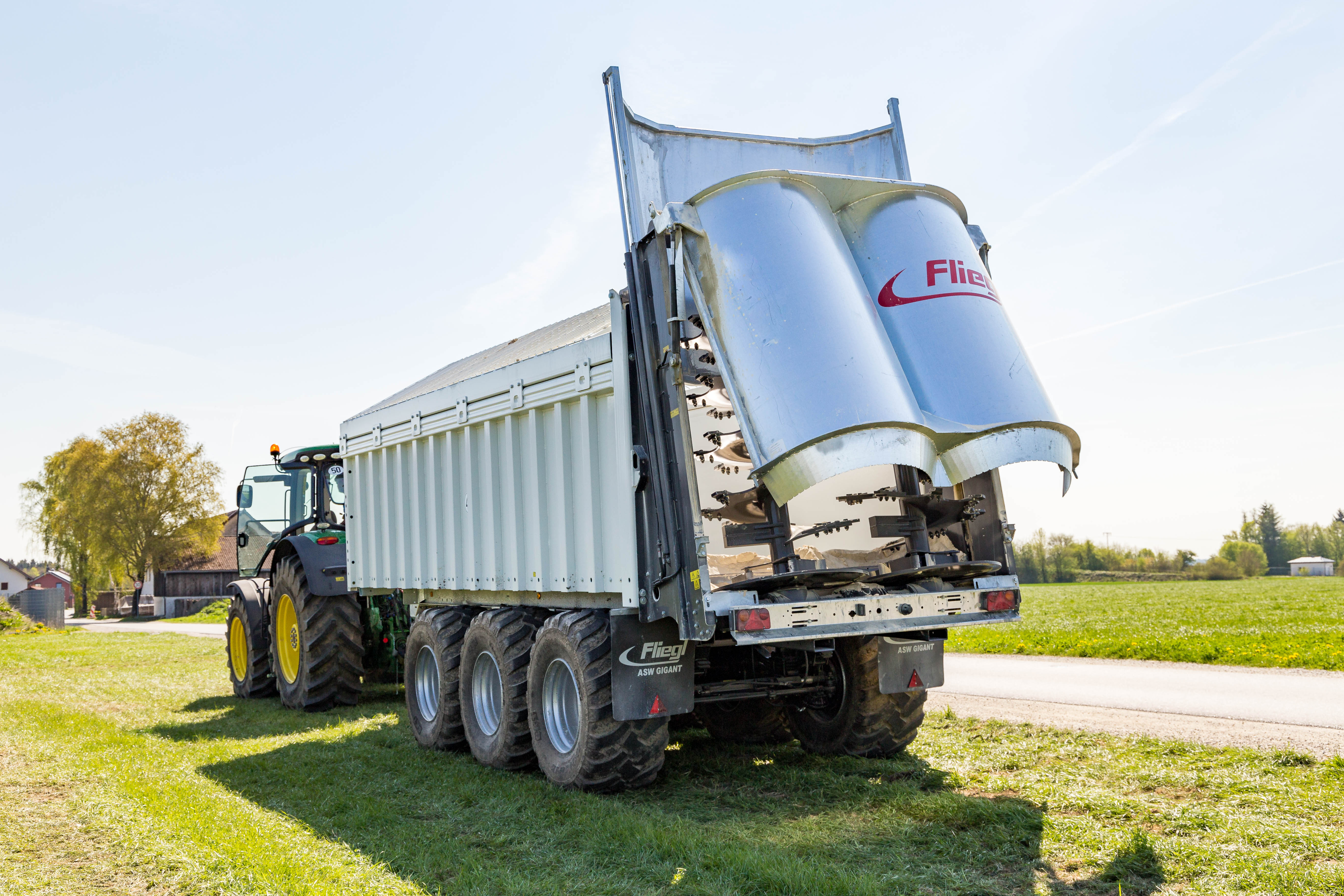 The capabilities of Fliegl's Gigant ASW trailers can be fully unlocked with the option of fitting a rear attachment.